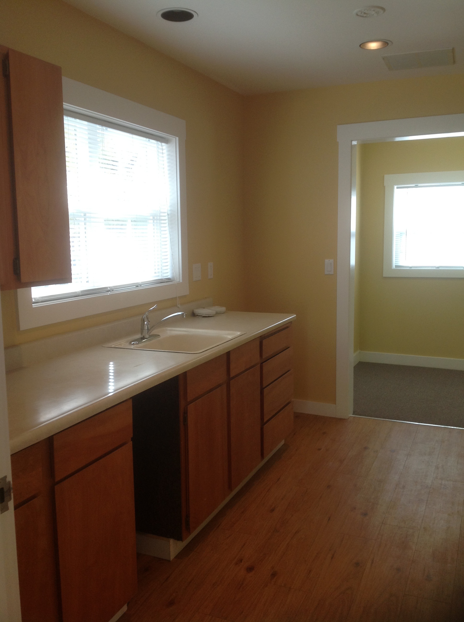 Entry at the side of the unit provides easy access to the storage room and kitchen: